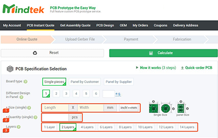 The two parameters of size and quantity must be filled in, and the number of pcb layers should also be selected.