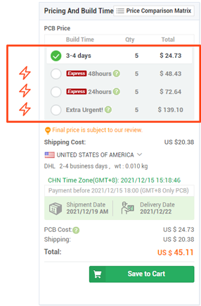 If you have requirements for lead time, you can choose expedited or other options in the pricing interface on the right.